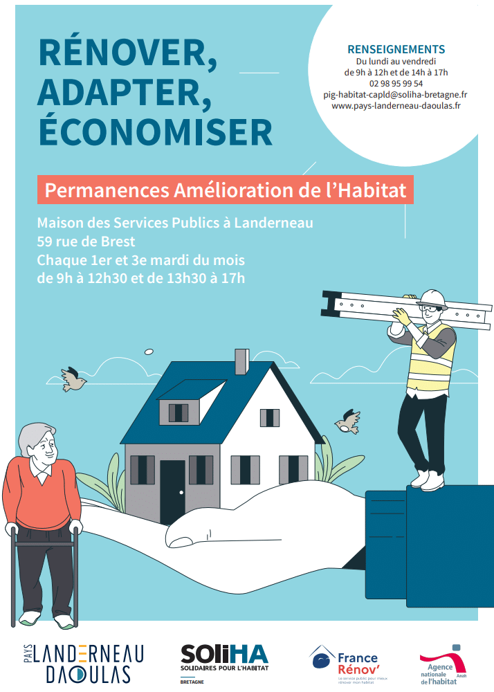 Dans le cadre du nouveau programme d’amélioration de l’Habitat, la Communauté d’Agglomération du Pays de Landerneau Daoulas a mis en place des permanences (sur rendez-vous) avec SOLIHA.