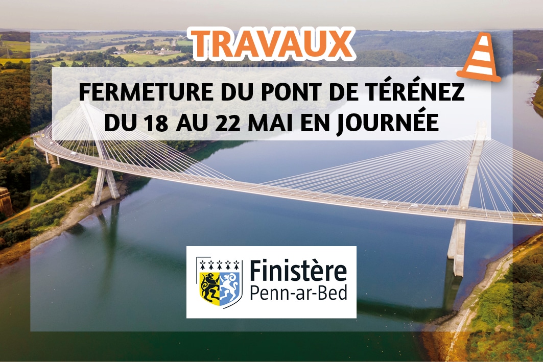 Le pont de Térénez sera fermé à la circulation entre Rosnoën et Argol 𝗱𝘂 𝗹𝘂𝗻𝗱𝗶 𝟭𝟴 𝗺𝗮𝗶 𝗷𝘂𝘀𝗾𝘂’𝗮𝘂 𝘃𝗲𝗻𝗱𝗿𝗲𝗱𝗶 𝟮𝟮 𝗺𝗮𝗶 2026 de 9h à 16h15 pour une inspection détaillée obligatoire.
