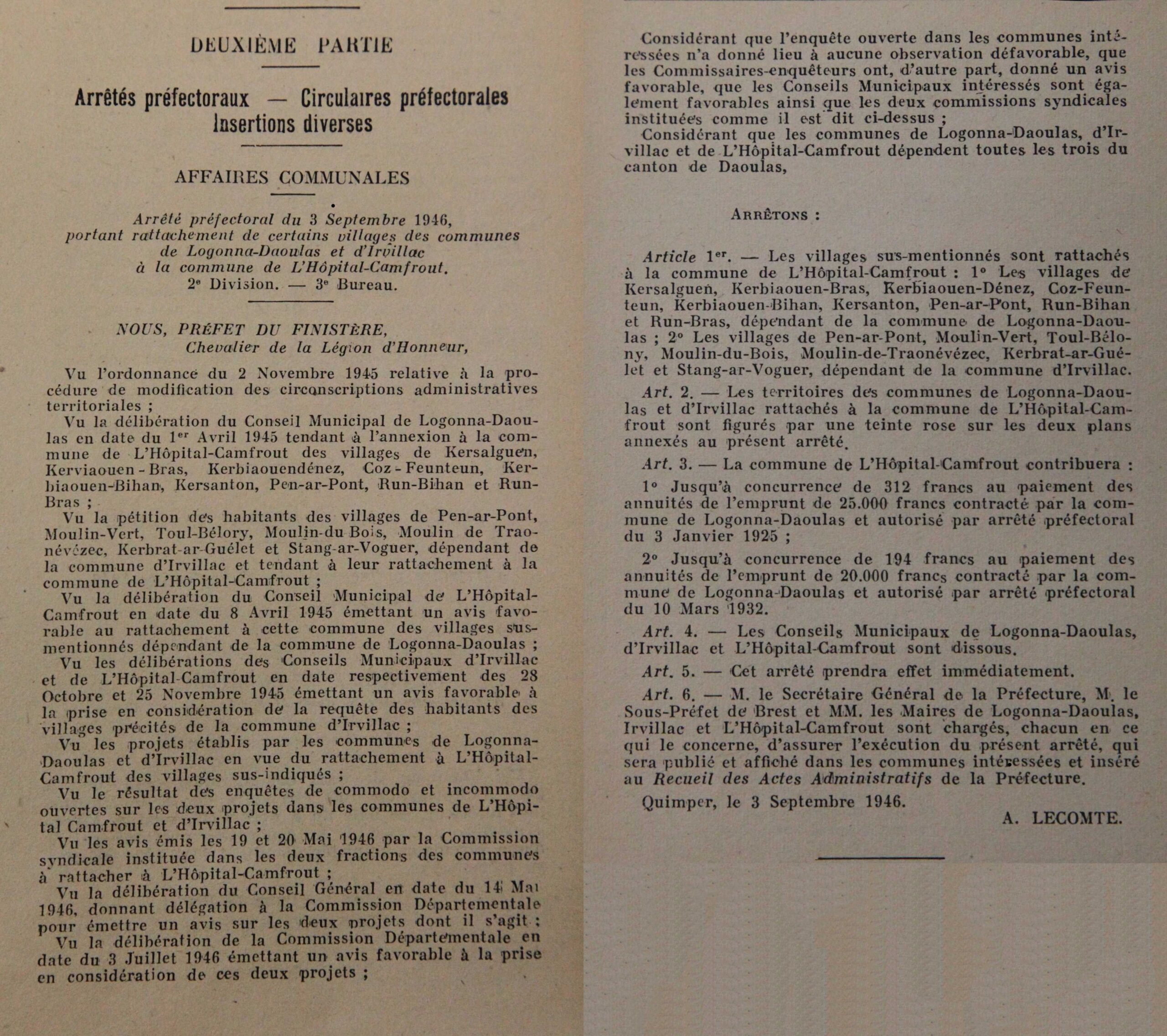 La devise : Tournée vers l’avenir, l’Hôpital-Camfrout reste fidèle à la devise « ARAOK ATAO » … en avant toujours