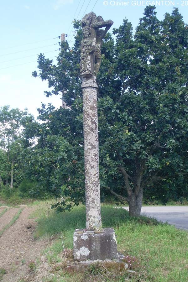 Restauré et déplacé (comme le reste du cimetière) en 1884, ce calvaire à trois degrés date du XVIe s. Haut de 7 mètres, il comprend deux croisillons : sur le premier figurent les statues géminées de la Vierge de Marie-Madeleine et de saint Pierre et de saint Jean ; sur le second, les deux larrons encadrent le crucifix, au revers duquel se trouve une Vierge à l’Enfant (source : la Bretagne d’Erin).
