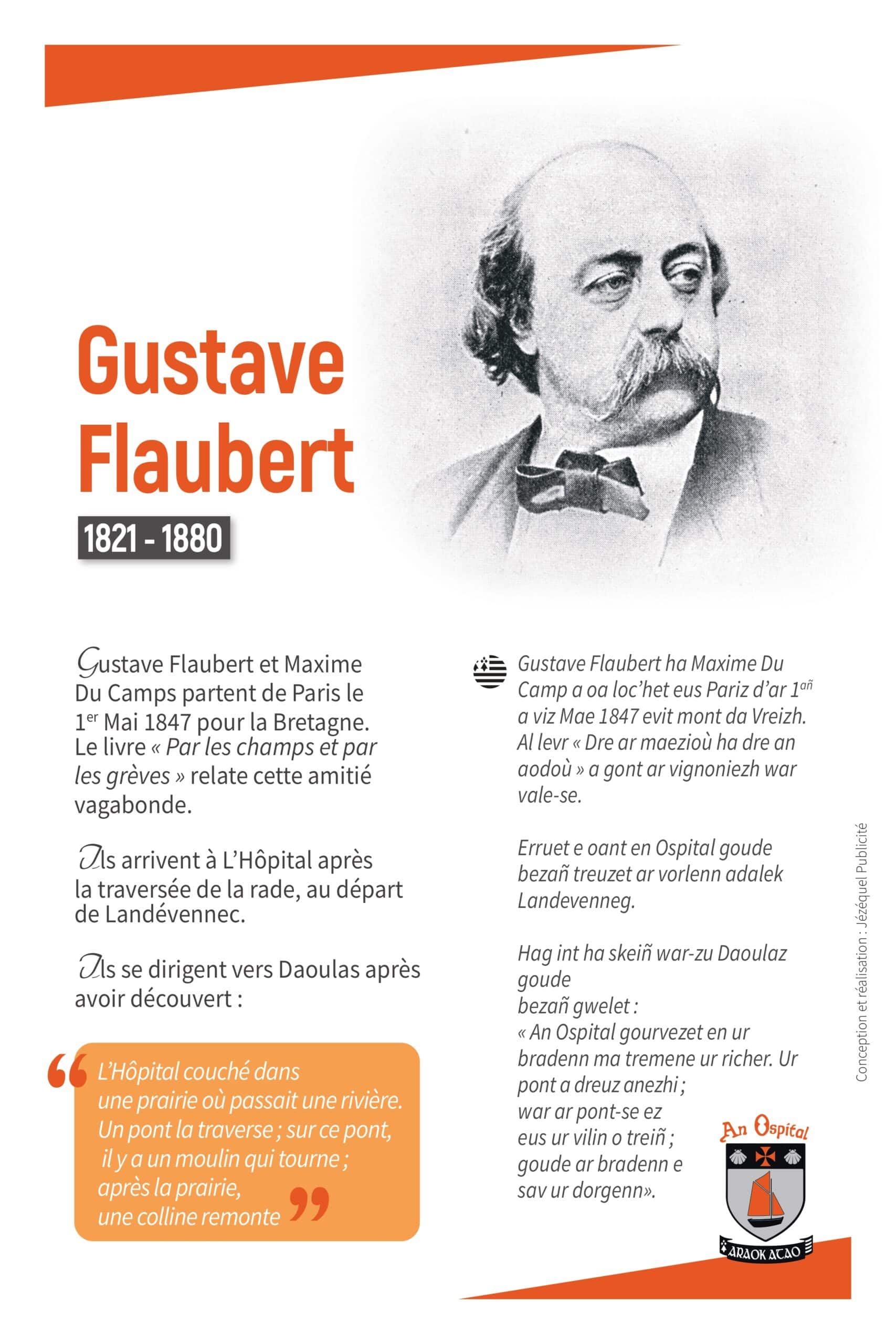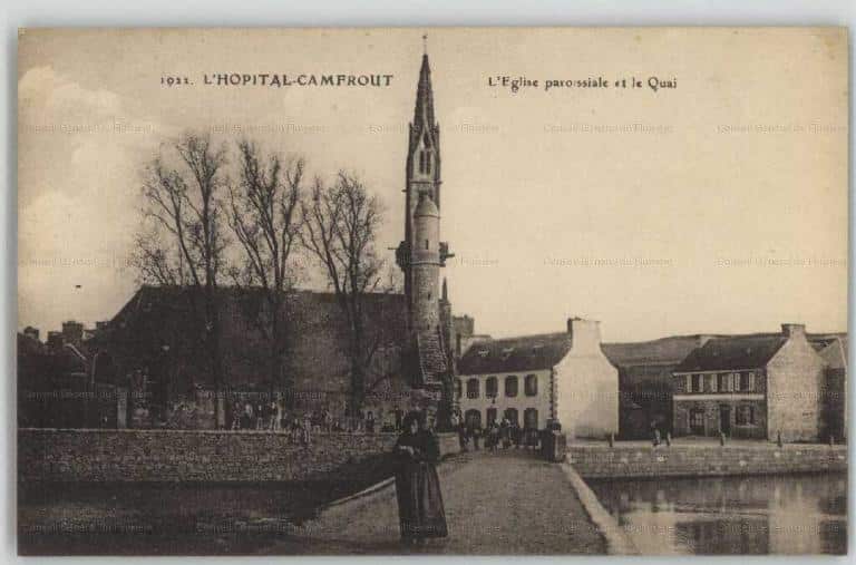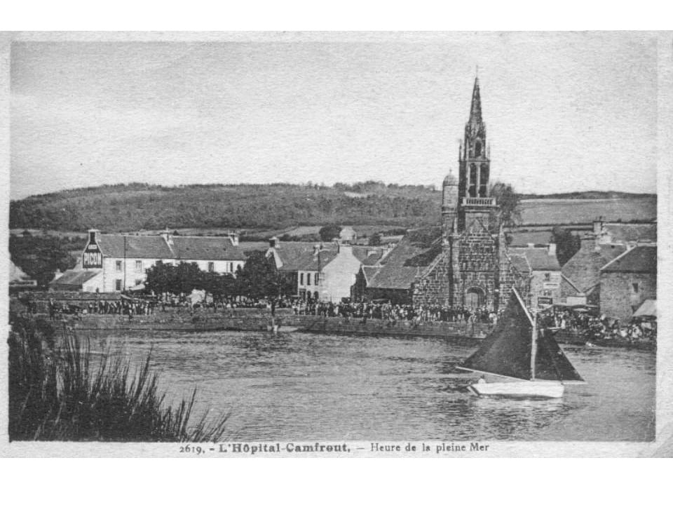 - Gustave FLAUBERT décrit ainsi L’Hôpital-Camfrout en 1886 : « Au haut d’une montée, nous aperçûmes le village de l’Hôpital couché dans une prairie où passait une rivière. Un pont la traverse ; sur ce pont, il y a un moulin qui tourne ; après la prairie, la colline remonte. » Gustave Flaubert, Par les champs et par les grèves (voyage en Bretagne), Charpentier, Paris, 1886, Gallica