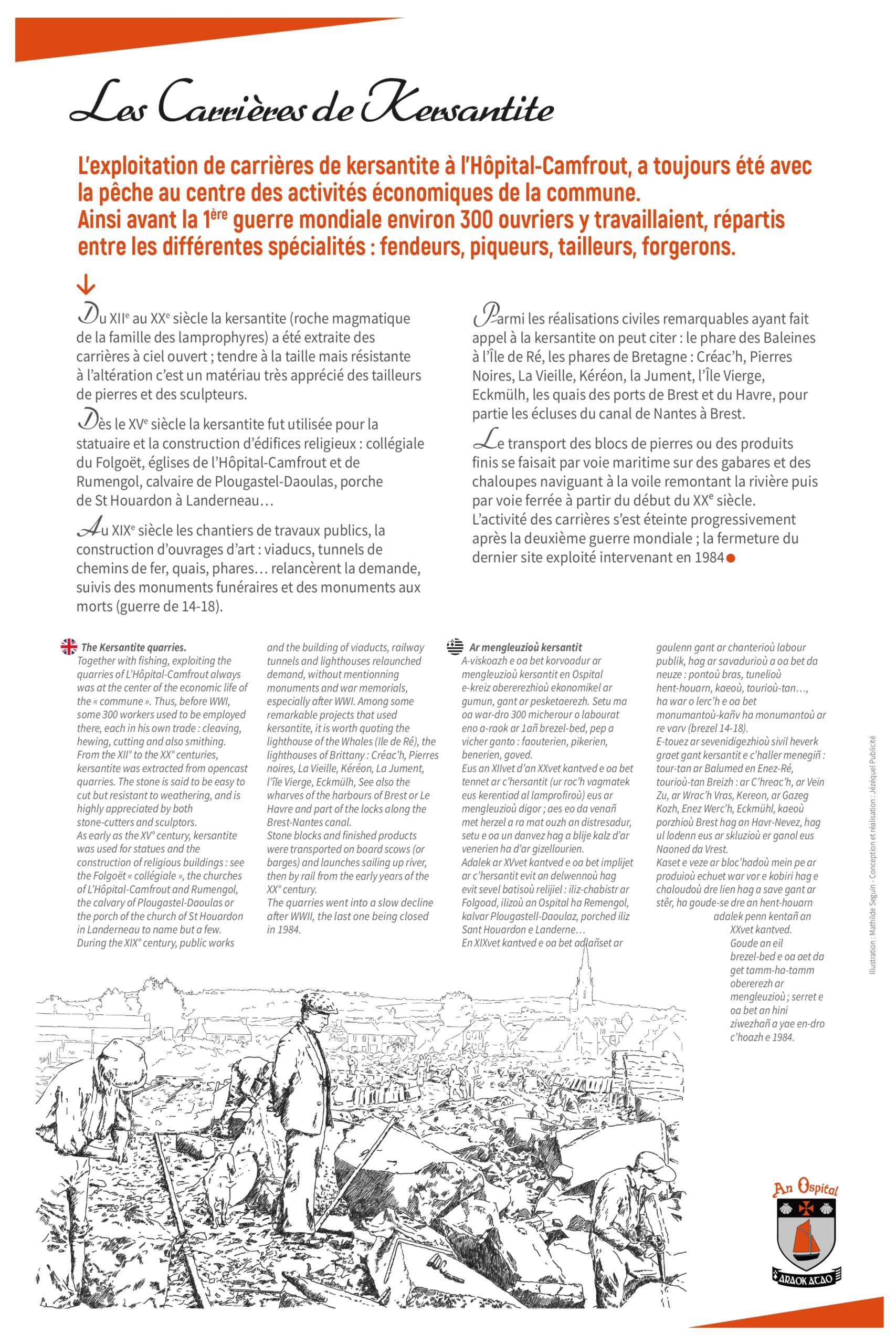 En 2021, la commune est labellisée par le Géopark d’Armorique pour son passé remarquable autour de la pierre de Kersanton. Une stèle en cet honneur est taillée par Dany SANQUER est installée au cœur du bourg.