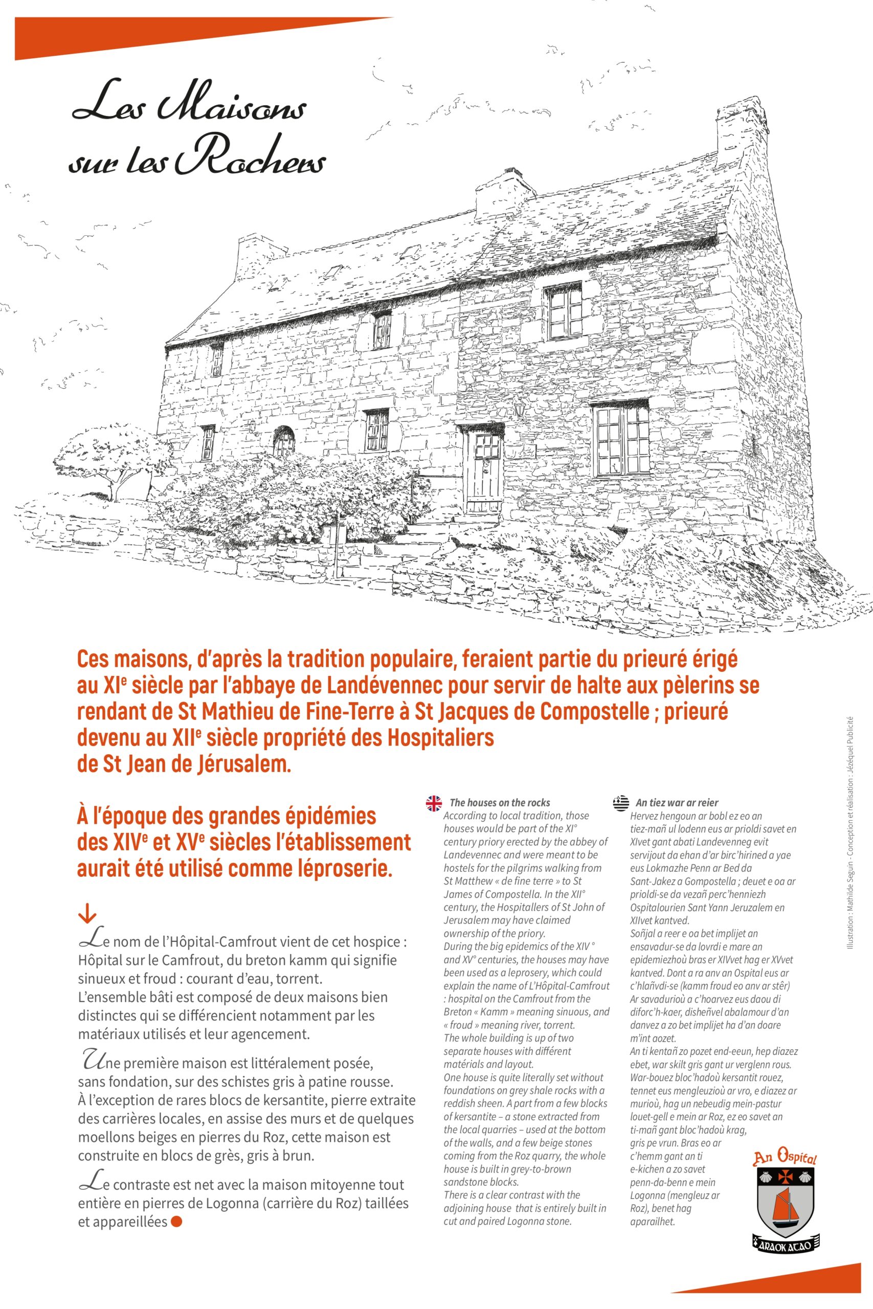 - 3 panneaux explicatifs ont été installés dans le bourg pour vous dévoiler les secrets des richesses patrimoniales camfroutoises (maisons sur les rochers, église, carrières).